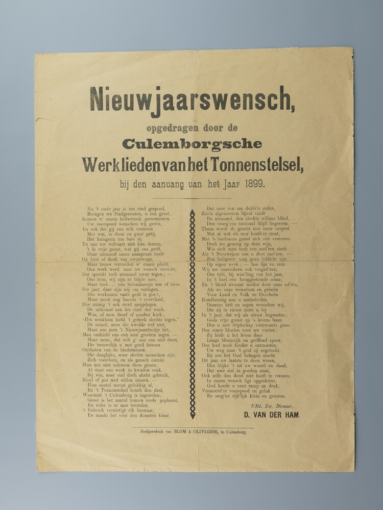 Nieuwjaarswens van de Culemborgse werklieden van het...