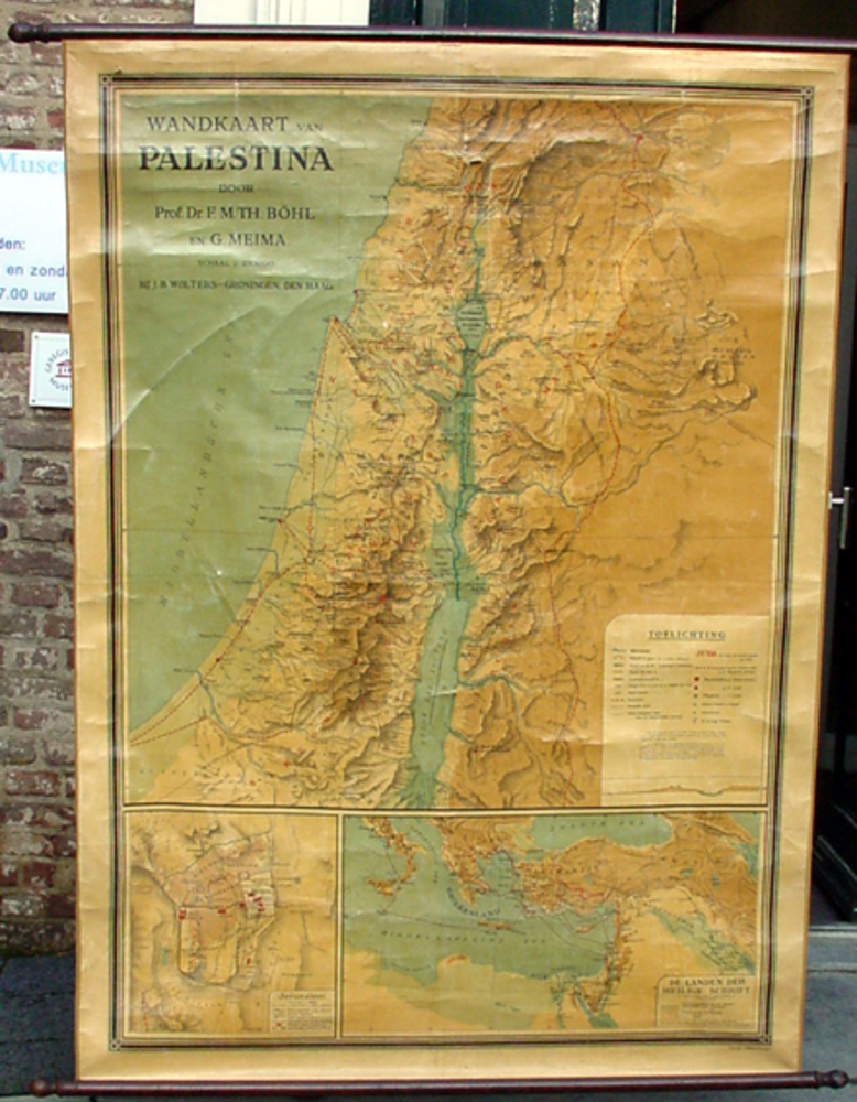Wandkaart van papier op linnen voorstellende Palesti...