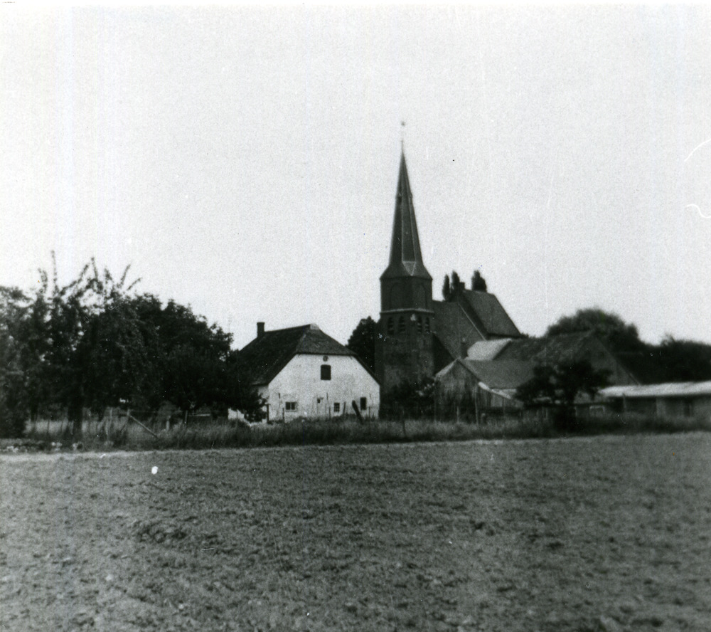 Zwart-wit foto van de Nederlands Hervormde Kerk in A...