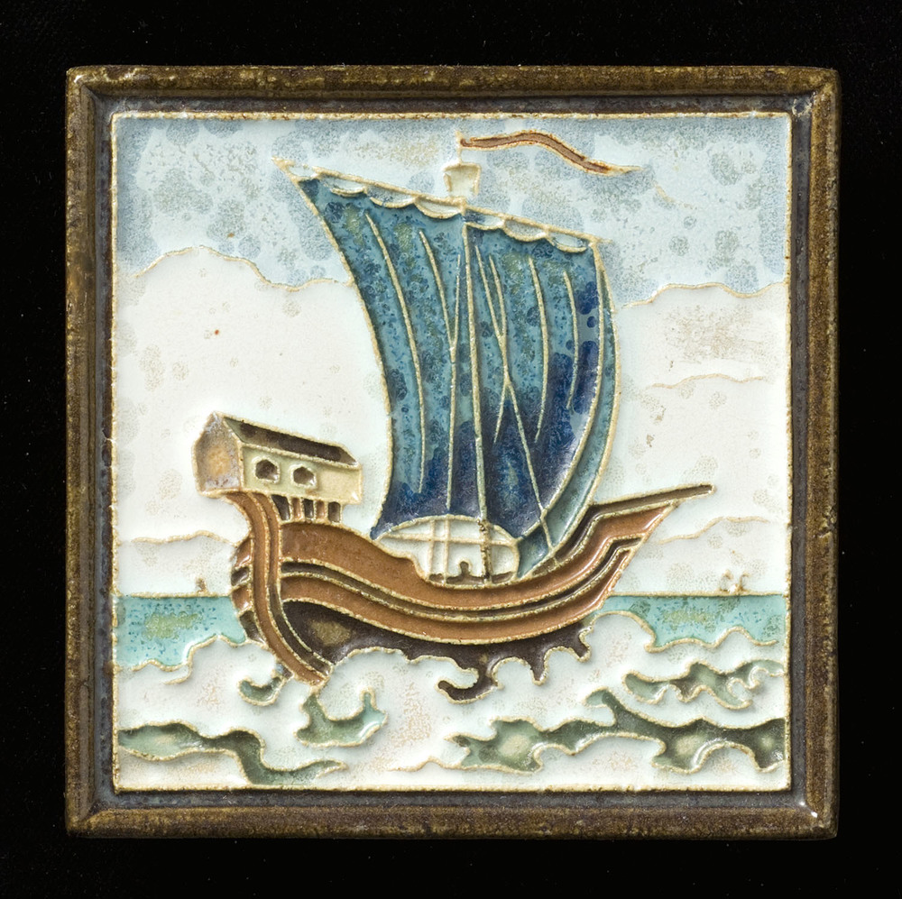 Tegel in cloisonné-techniek, met voorstelling: Hansa...