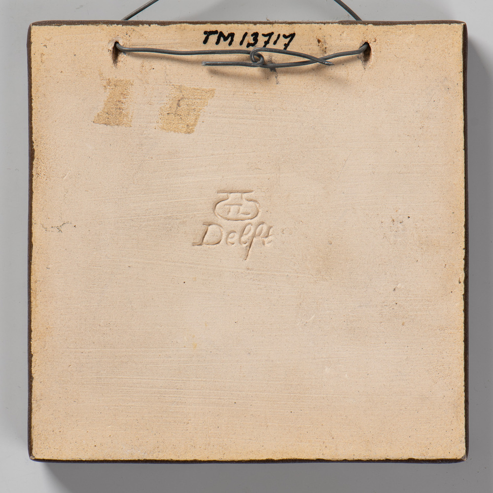tegel van aardewerk met tinglazuur, voorstellende: h...