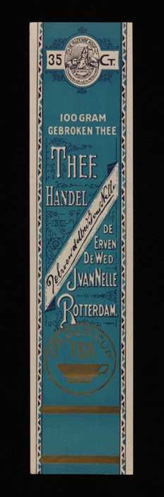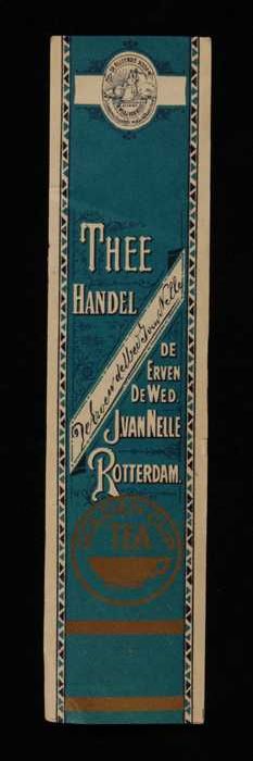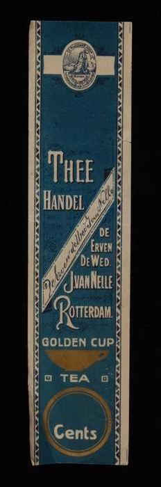Blauw, papieren label VAN NELLE GOLDEN CUP THEE, bla...