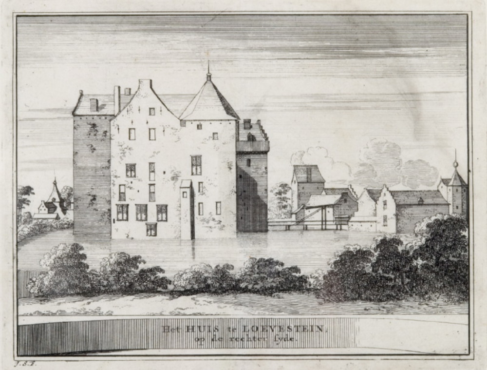 Het Huis te Loevestein, op de rechter syde, kopergra...