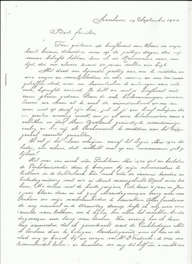 Getypte brief aan de ouders van Cees van den Bergh.