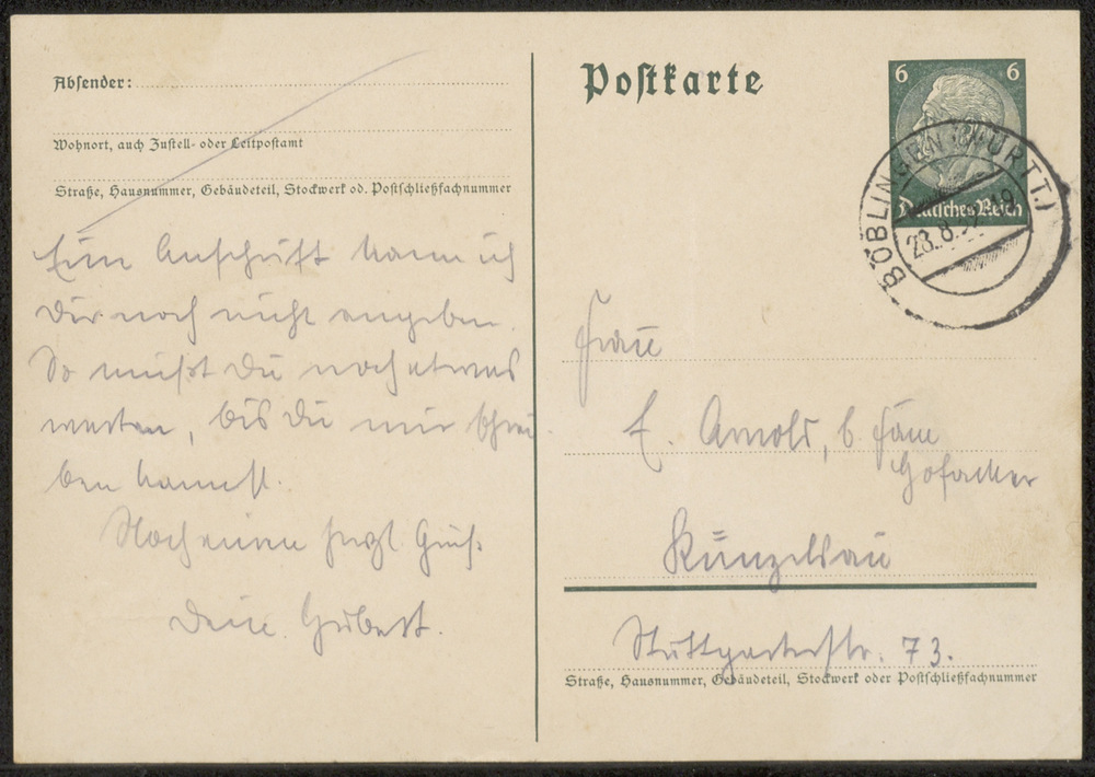 Briefkaart van Hubert aan Ella d.d. 28-08-1939