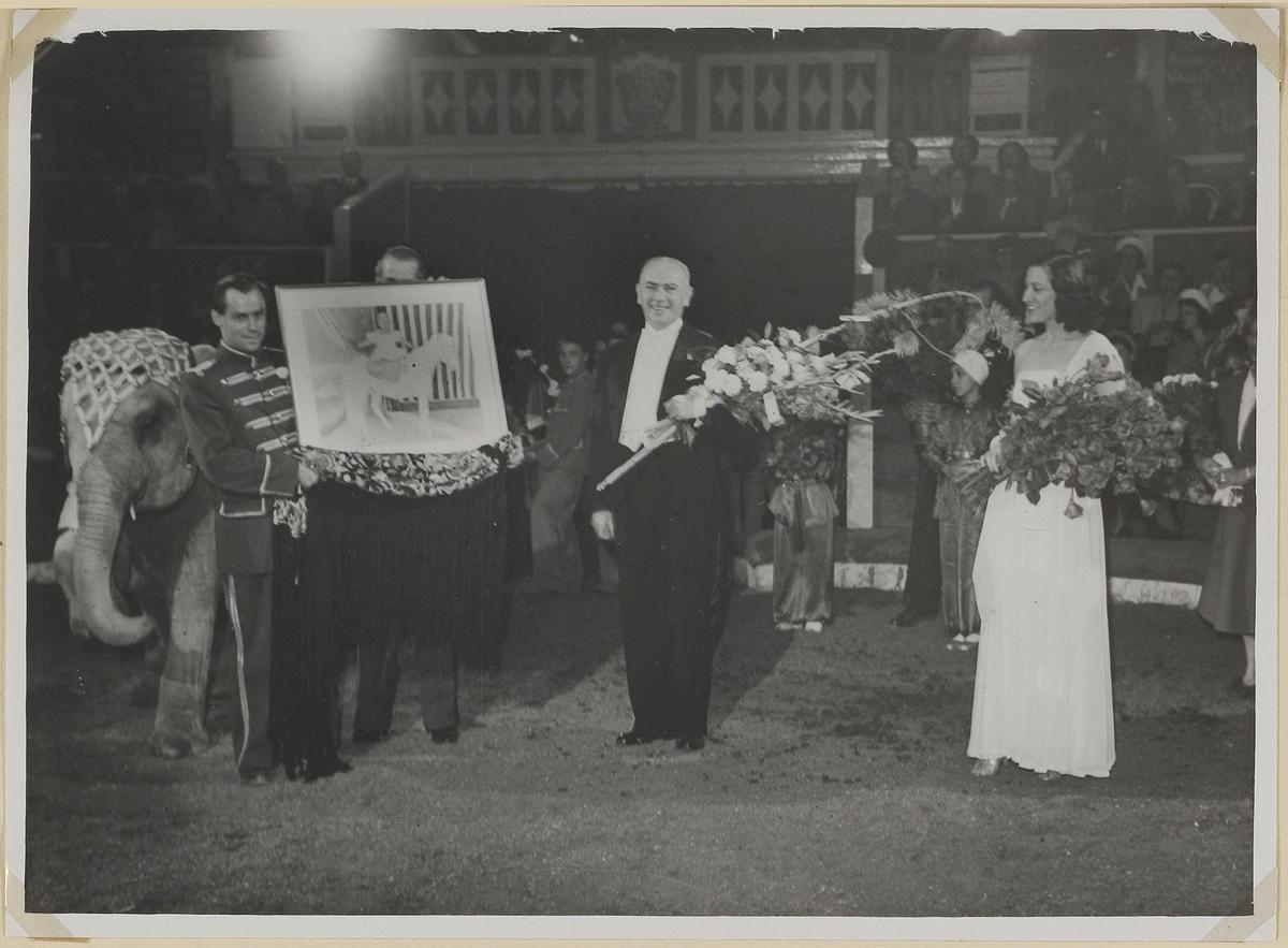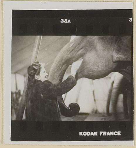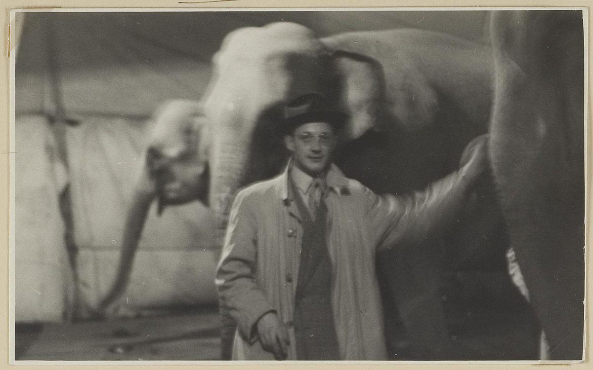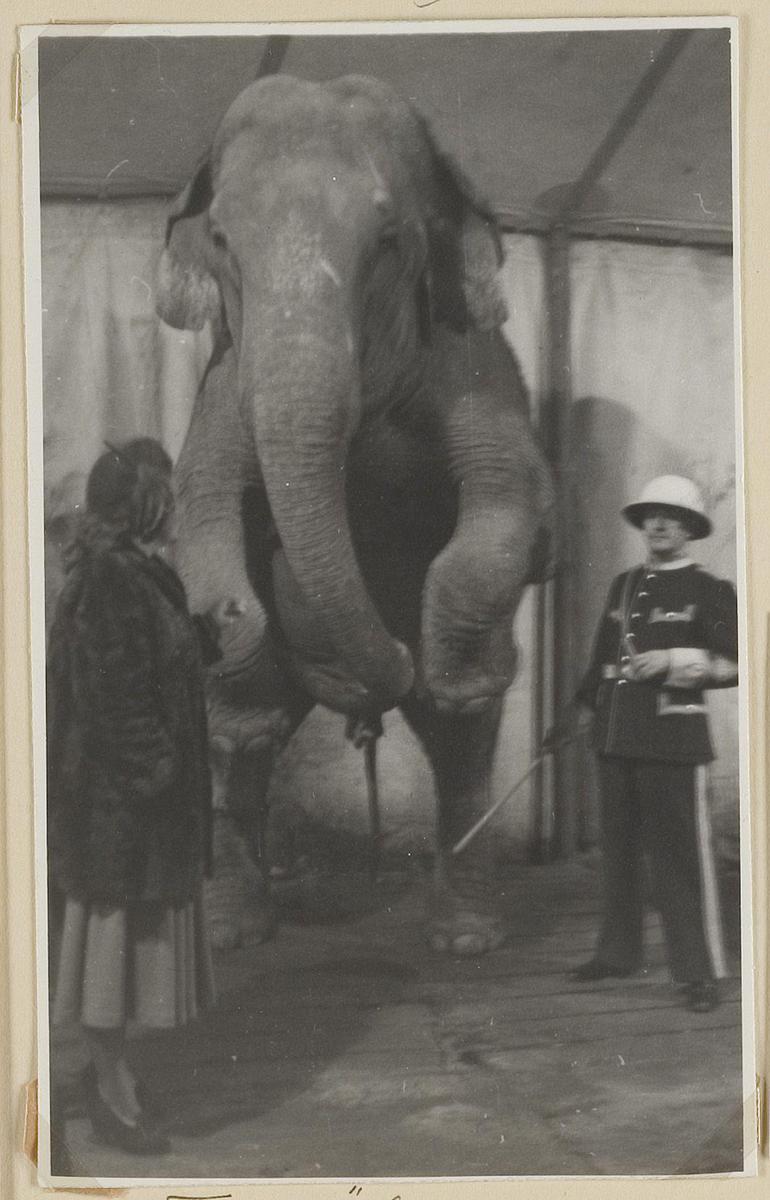 Dresseur Fritz Oehme met olifant. Uit album Elly Bur...