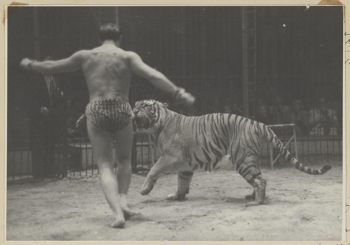 Gilbert Houcke met een tijger. Onderdeel album Elly ...