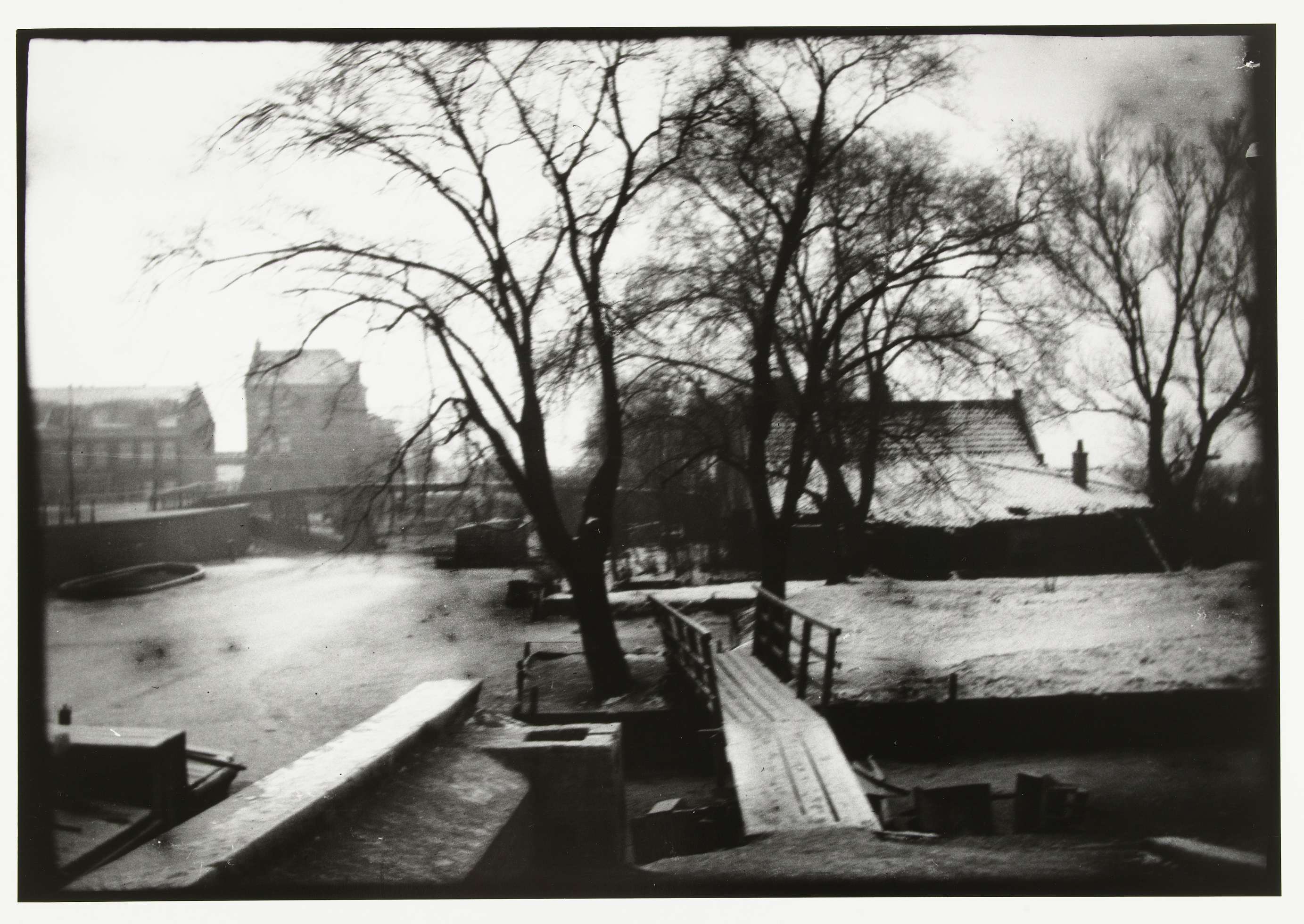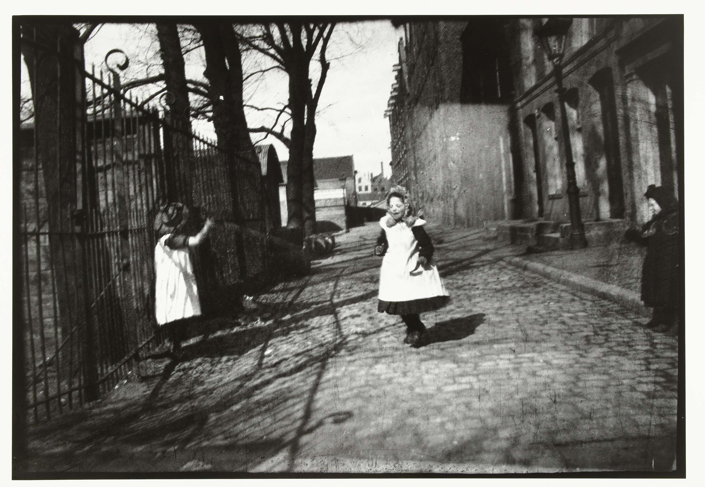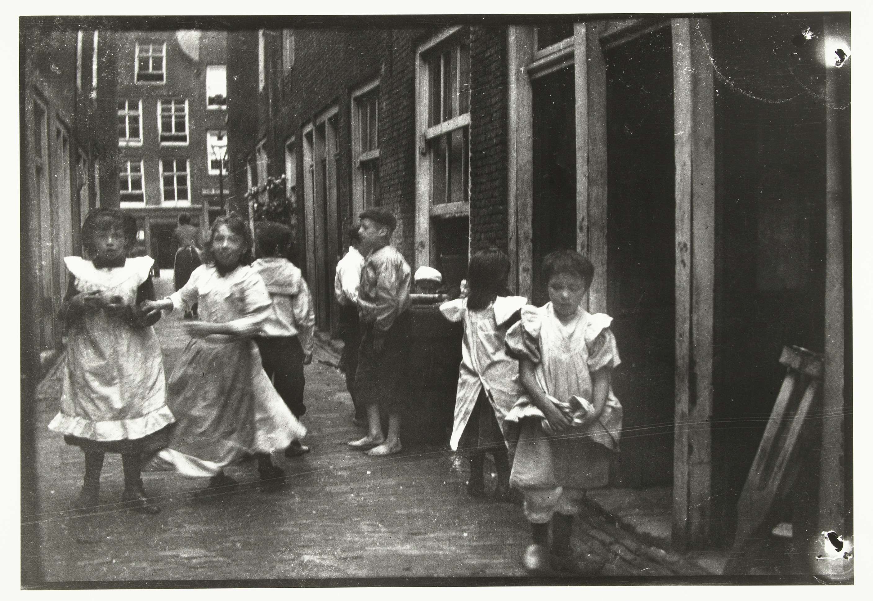 Kinderen spelend voor ingang Breitners atelier op Pr...