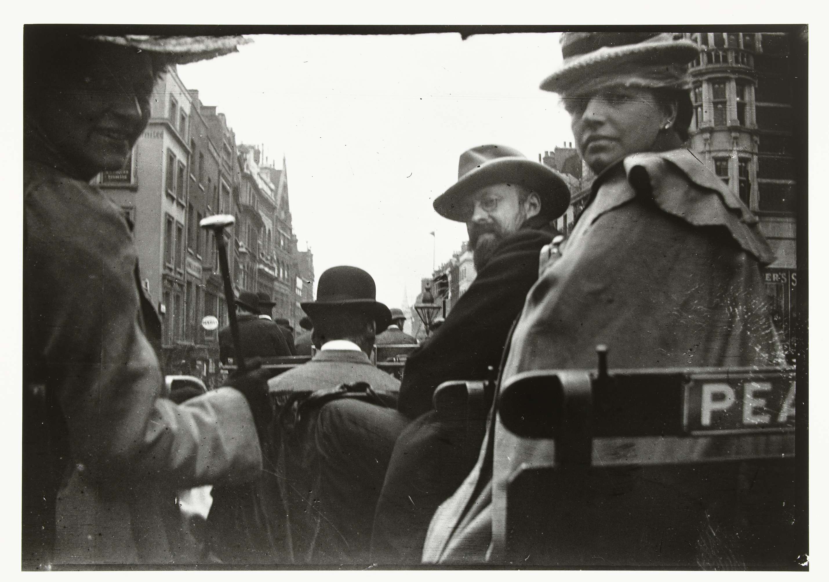 George Breitner en Marius Bauer in een rijtuig in Lo...