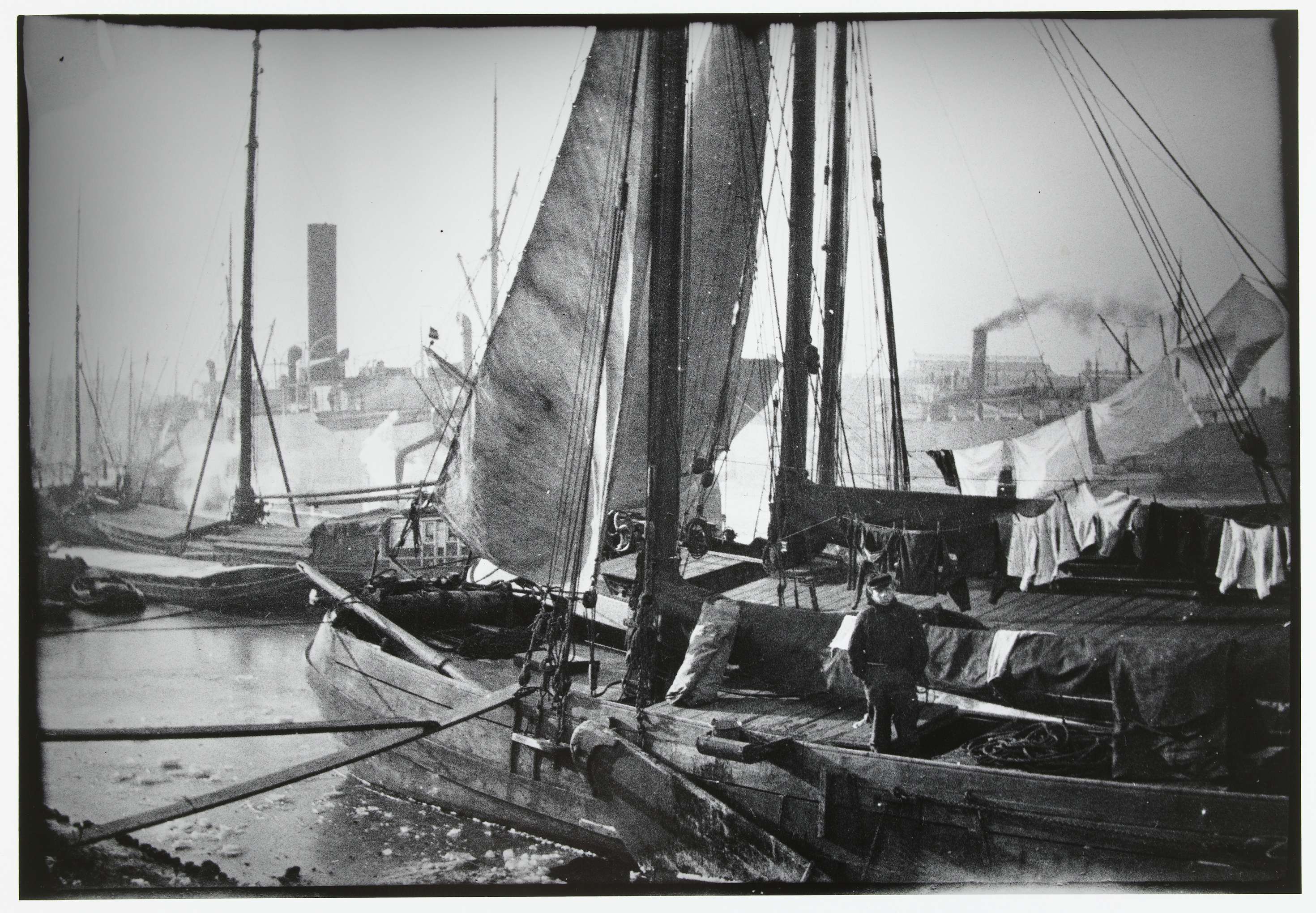 Gezicht op een scheepswerf op het Prinseneiland in A...