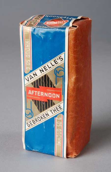 Blauw, papieren label VAN NELLE AFTERNOON THEE, 500 ...