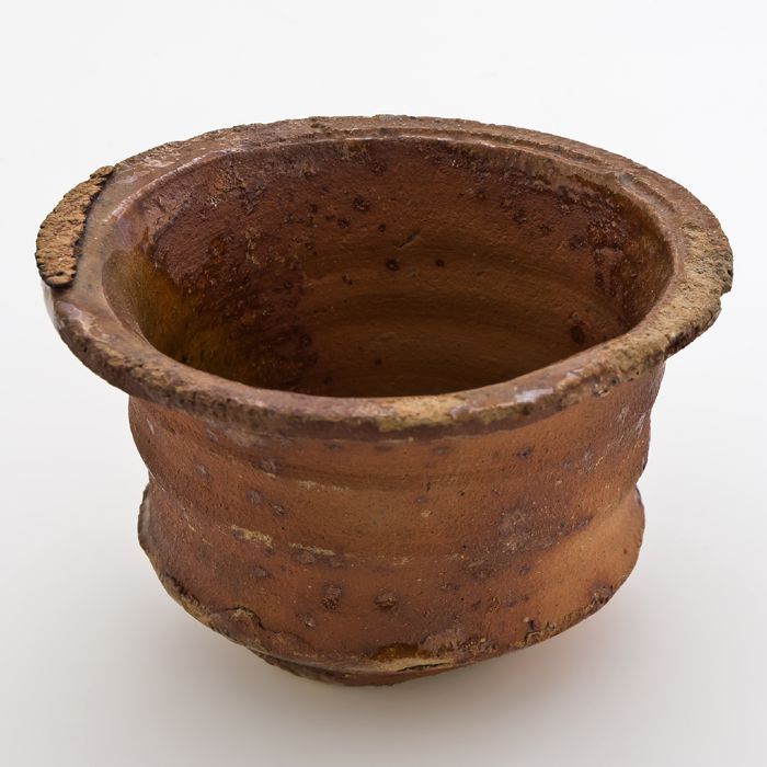 Aardewerk zalfpot, vijzelmodel met uitstulpende rand...