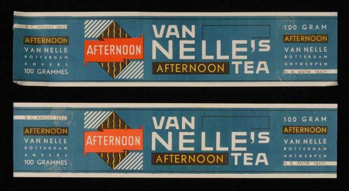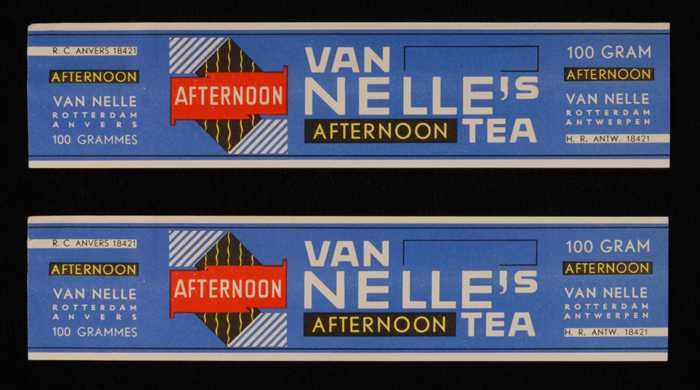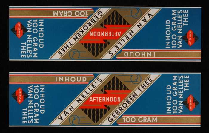 Twee blauw, goud en rode labels VAN NELLE'S AFTERNOO...