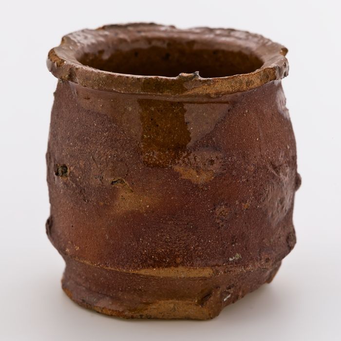 Aardewerk zalfpot, buikmodel met insnoering boven de...