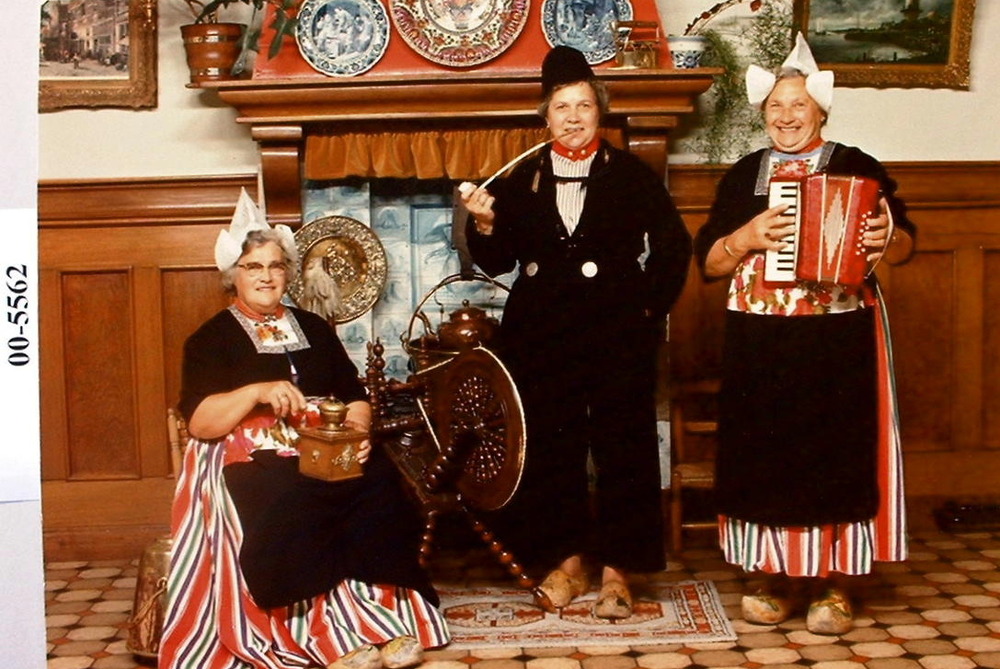 Drie zussen in Volendams kostuum.Links An Klaassen-L...
