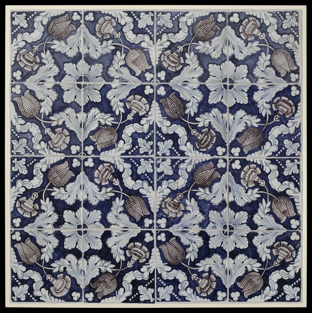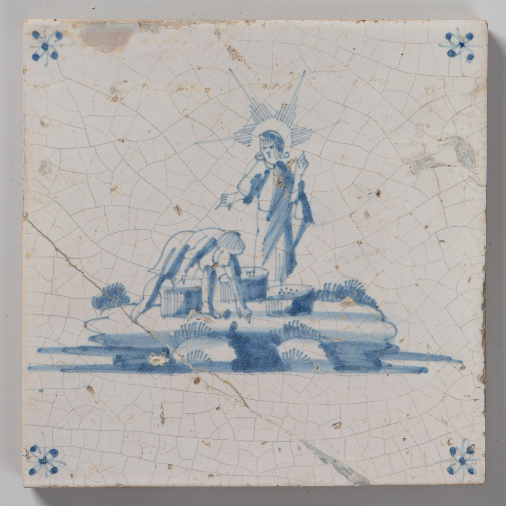 tegel van keramiek met tinglazuur, voorstellende: de...