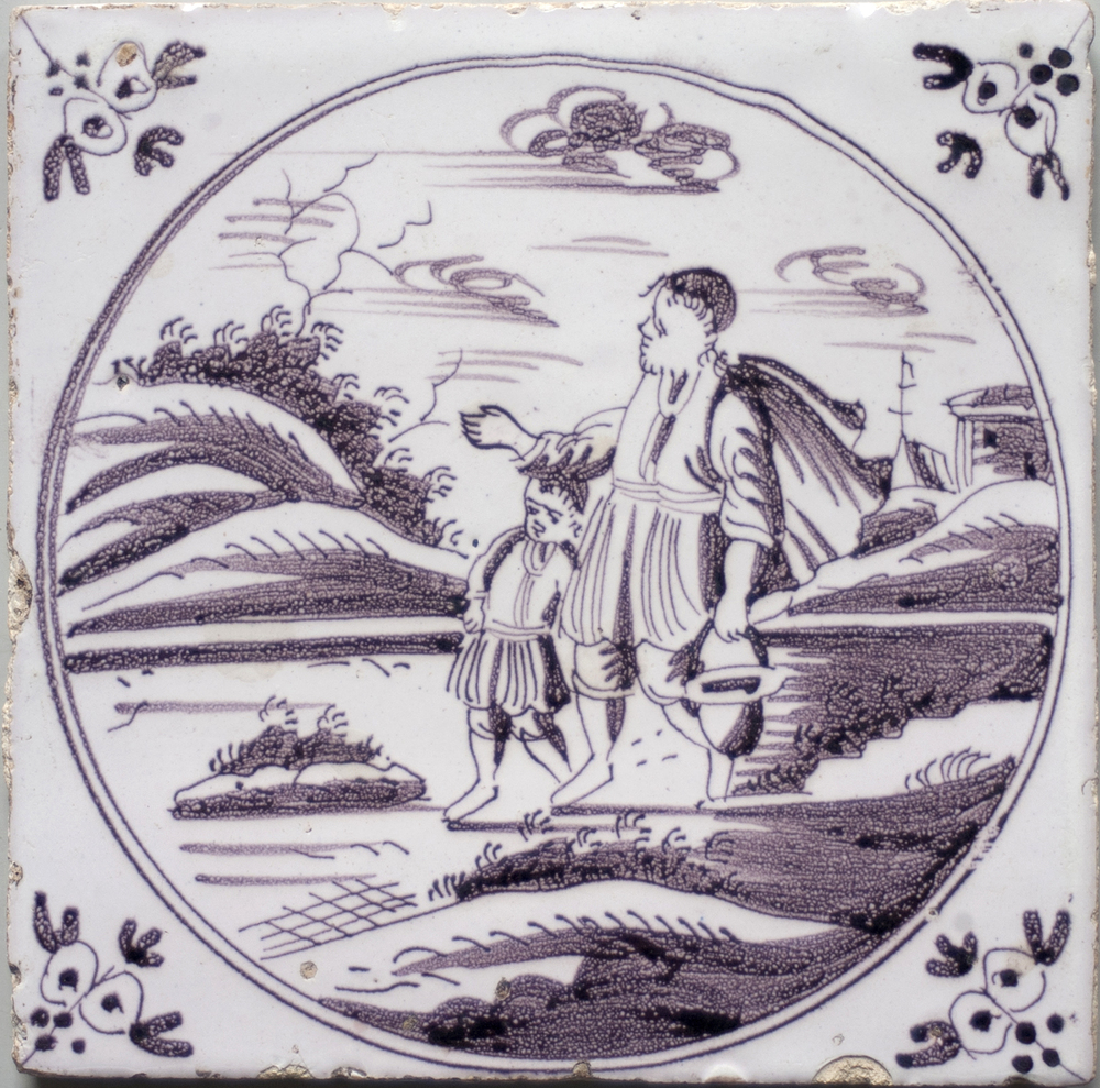tegel van keramiek met tinglazuur, voorstellende: Lo...