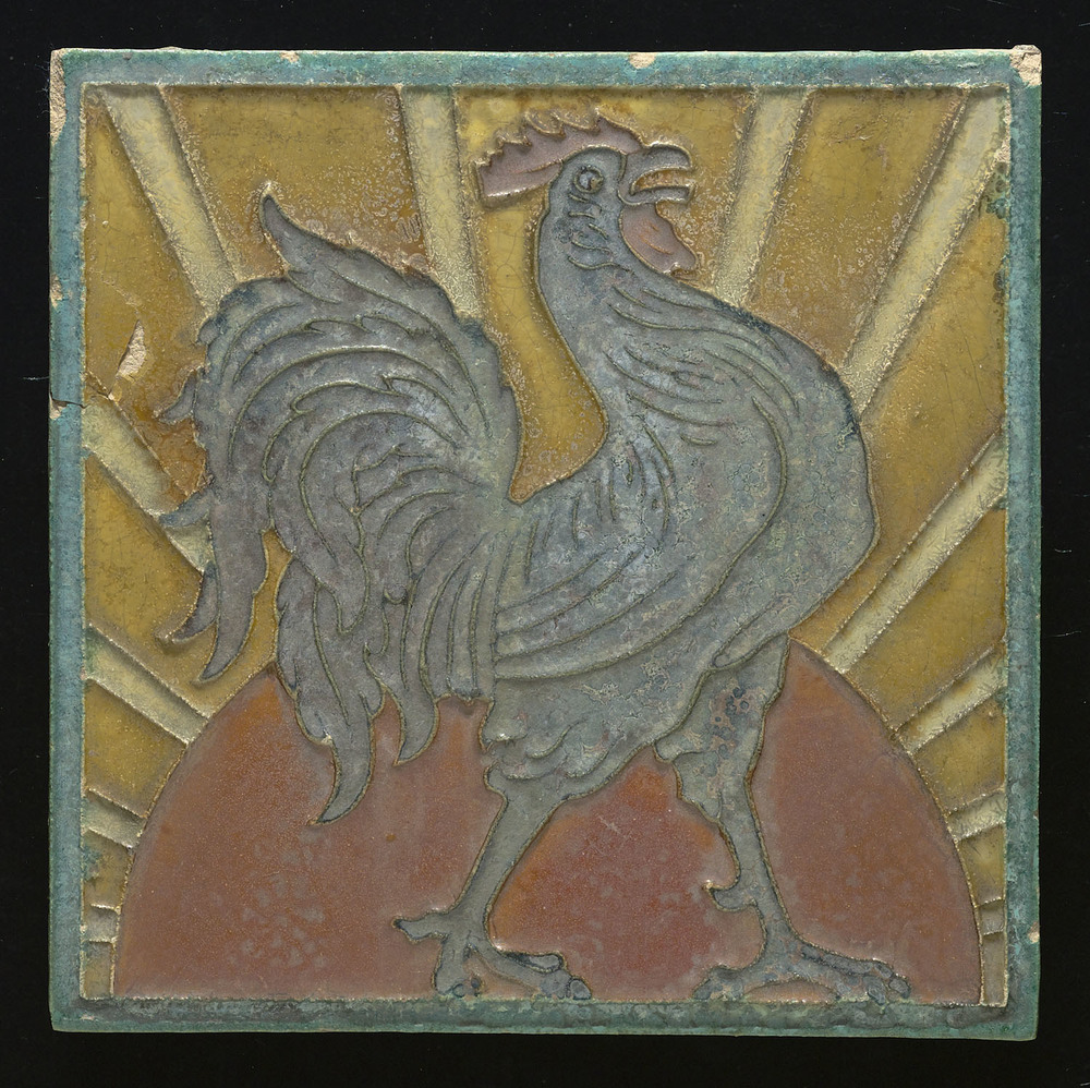 Tegel in cloisonné-techniek, met voorstelling: draka...