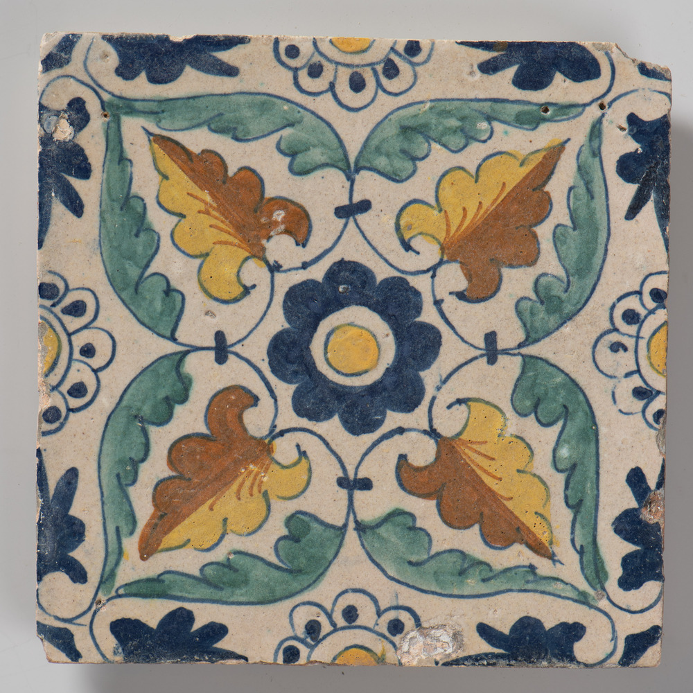 Tegel van keramiek met tinglazuur, voorstellende: or...