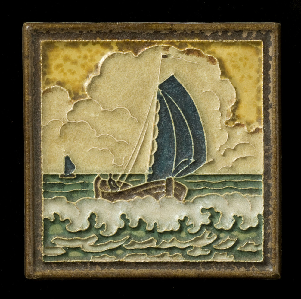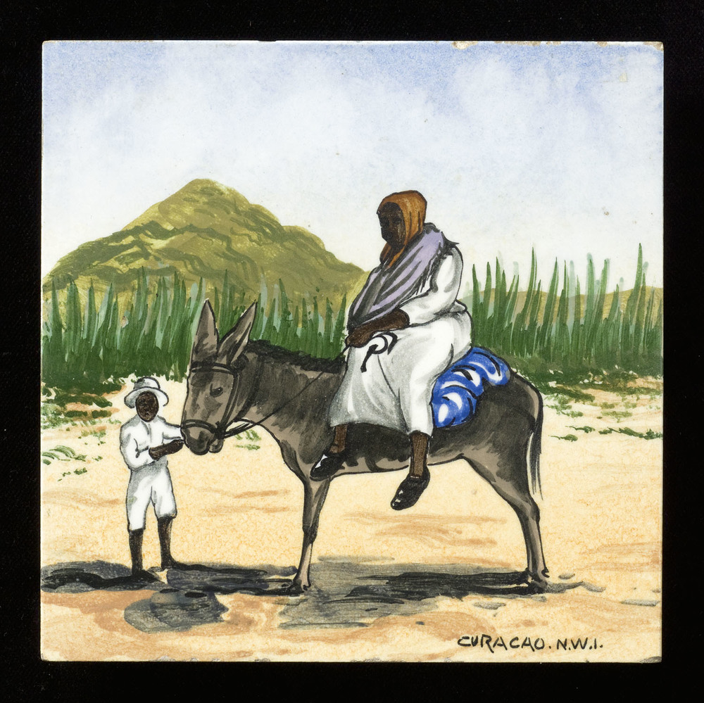 Tegel van keramiek in onderglazuur, voorstellende: v...
