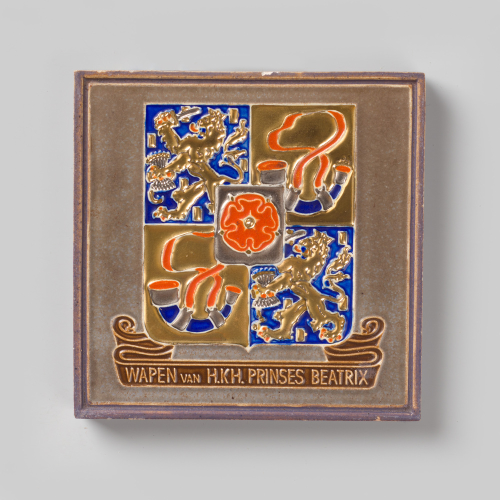 Tegel in cloisonné-techniek, voorstellende: Wapen va...