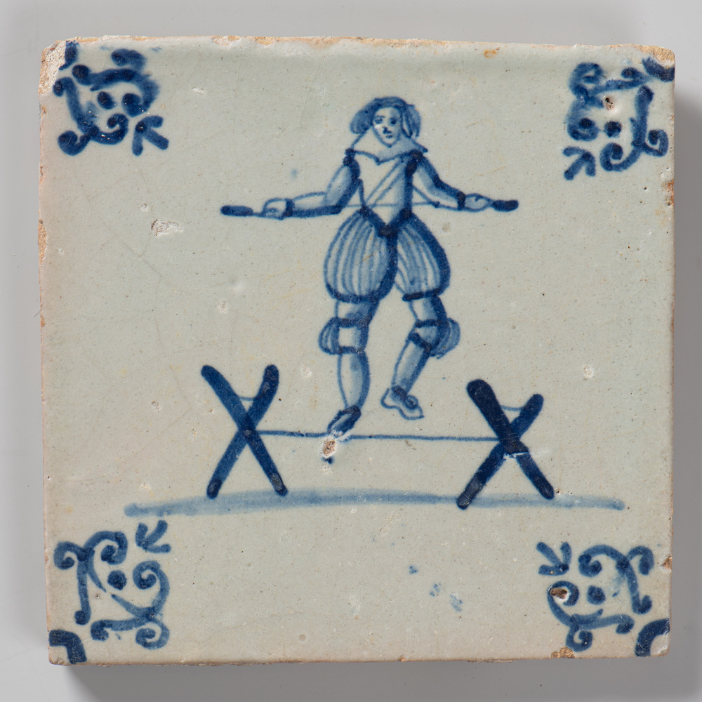 tegel van keramiek met tinglazuur, voorstellende: ke...