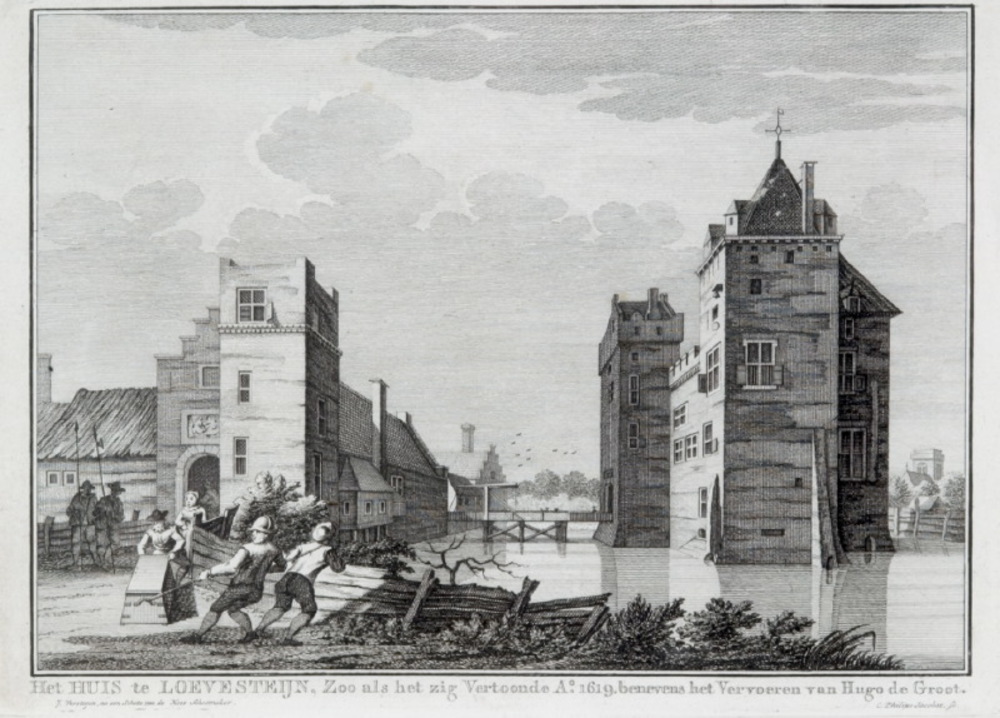 Loevestein vanuit het noorden, kopergravure, 18de eeuw