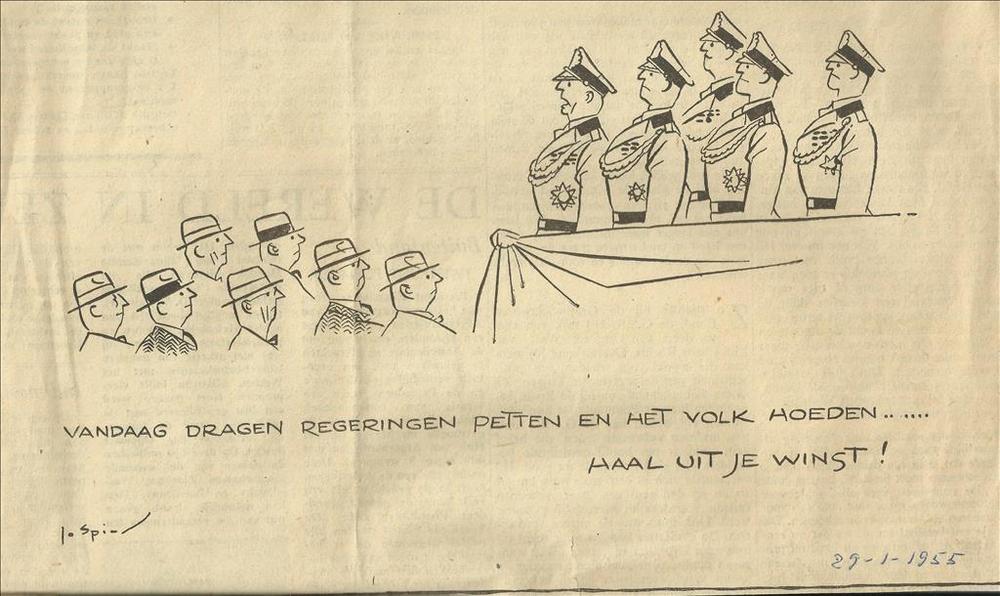 Krantenknipsel met daarop een spotprent, er was een ...