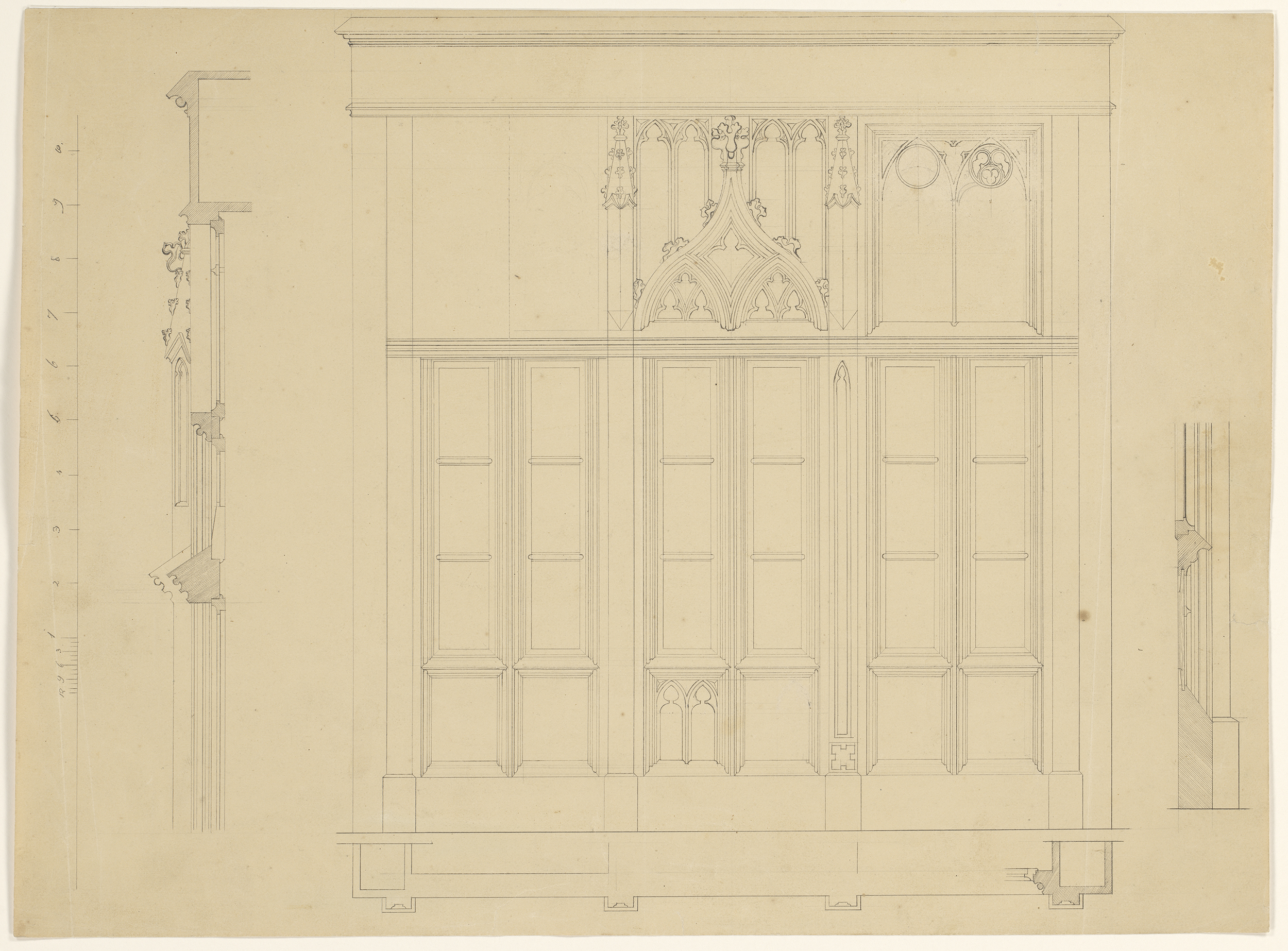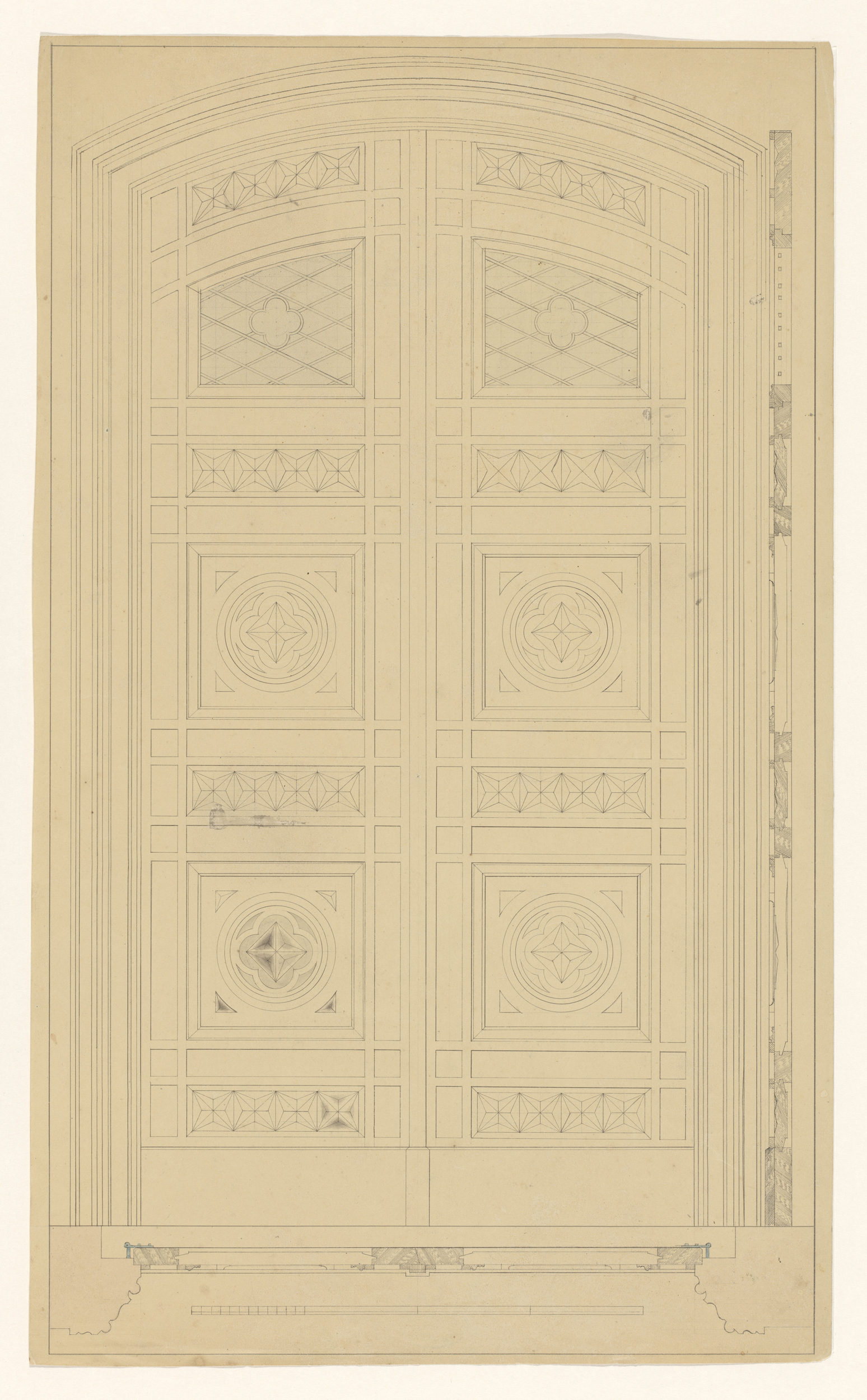 Ontwerp voor een gothisch portaal, met twee zijaanzi...