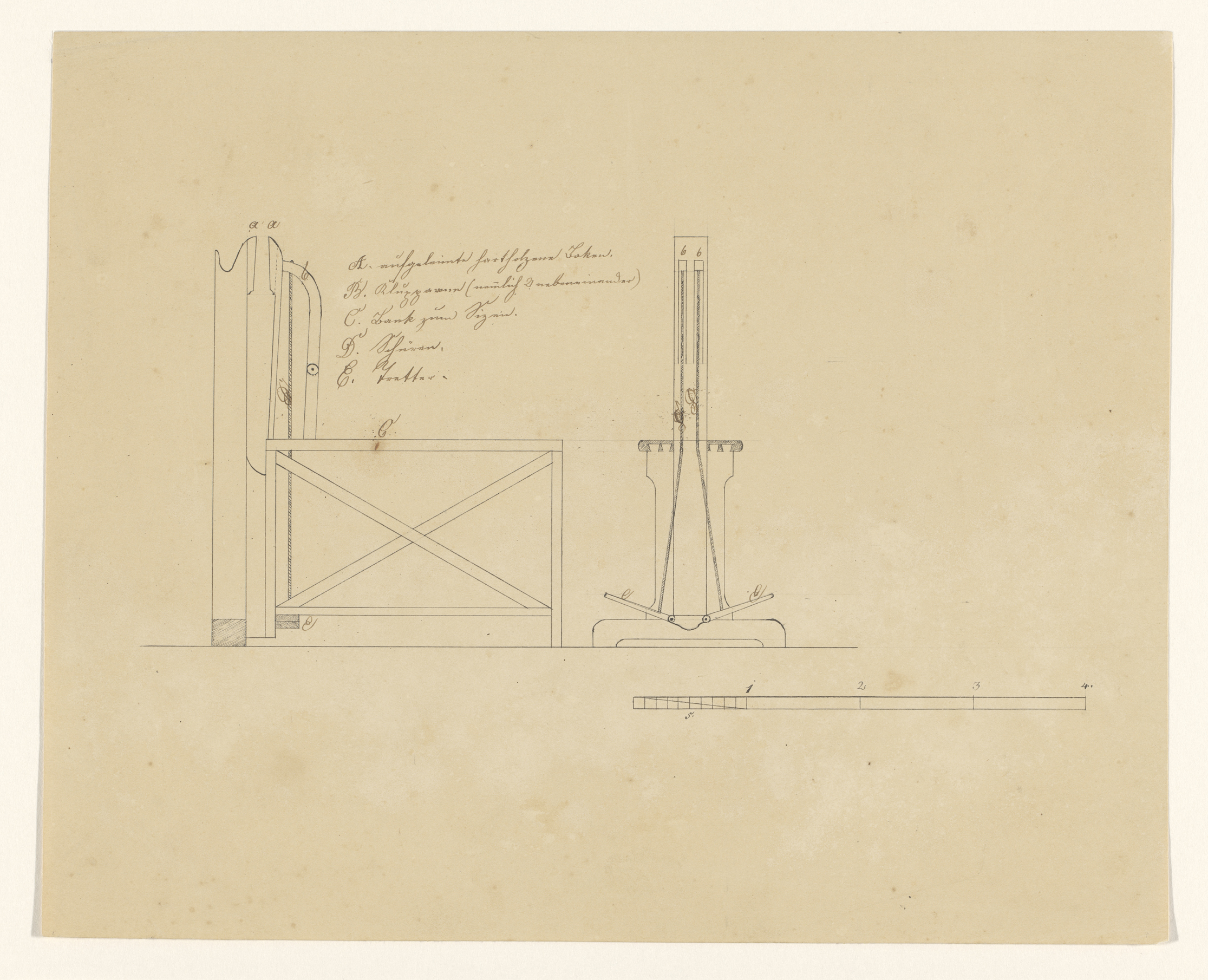 Ontwerp voor een verstelbare standaard, twee aanzich...
