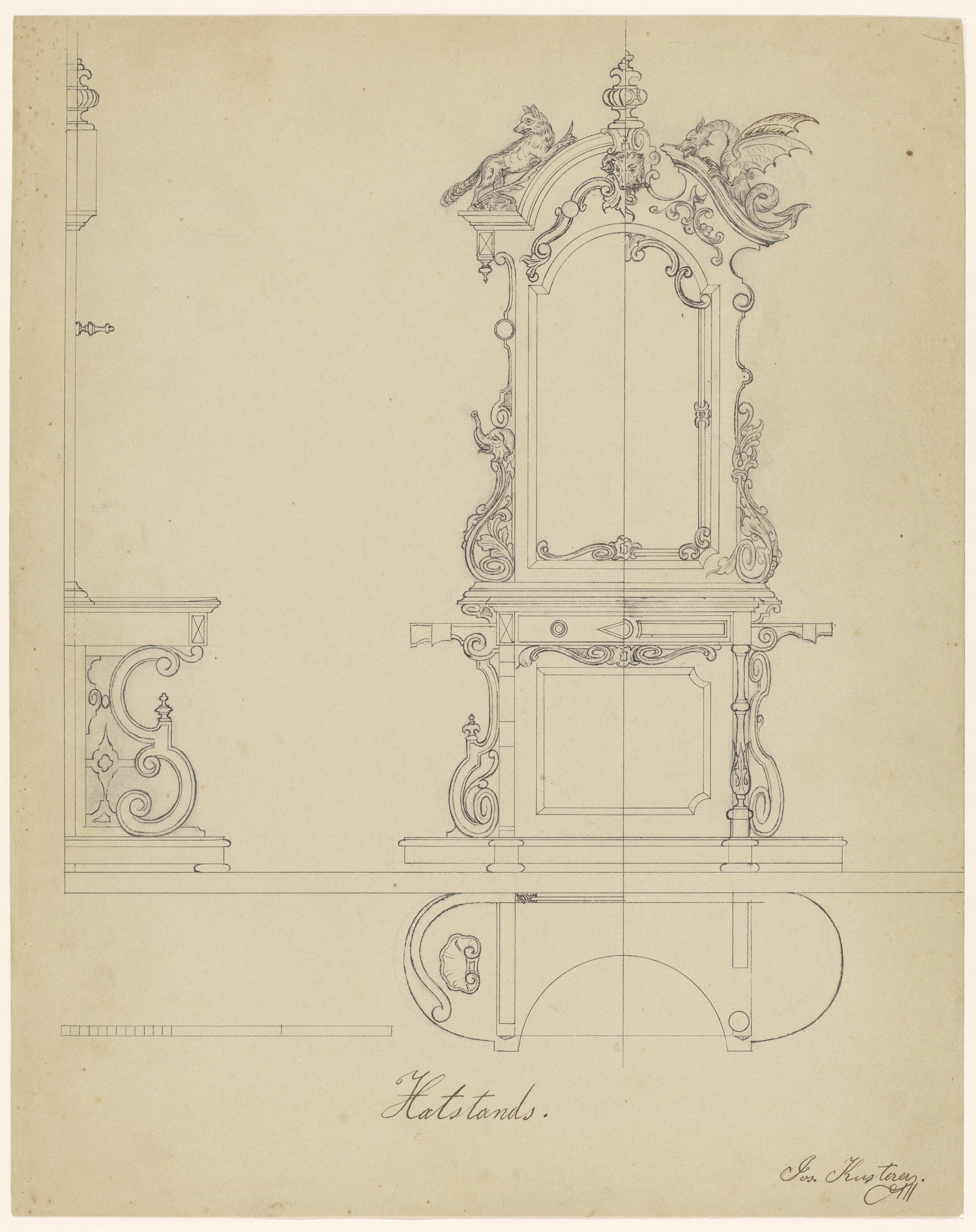 Ontwerp voor een verstelbaar haardscherm, voor en zi...