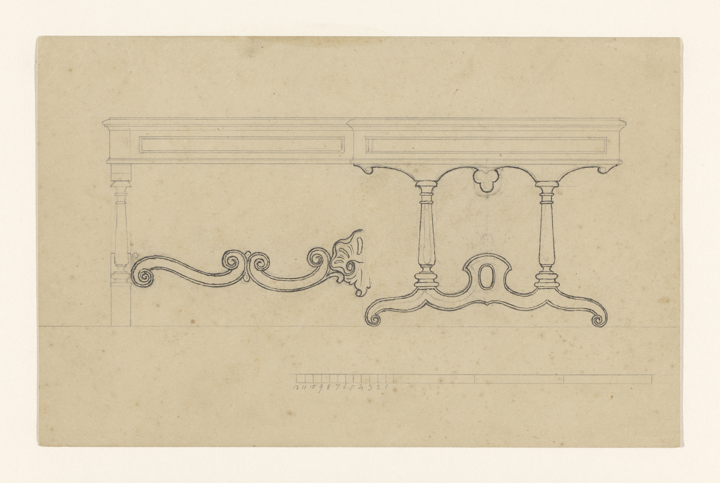Ontwerp voor een tafel, met een gecombineerd voor- e...