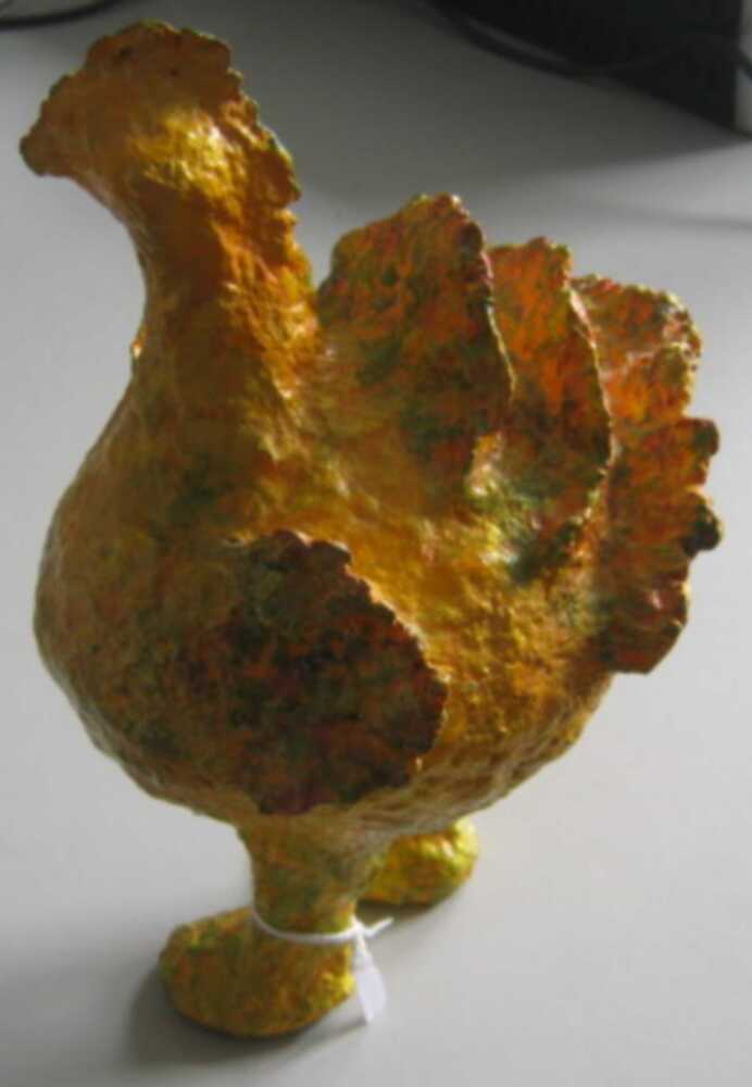 Beeldje van papier maché met de titel 'Vreemde Vogel...