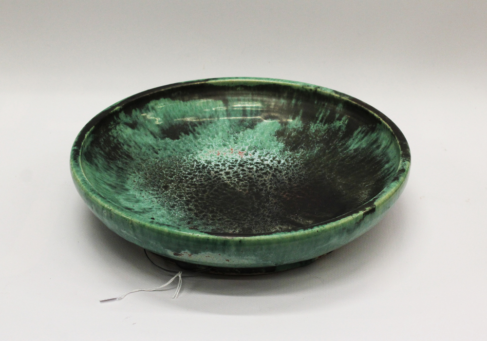 Schaal van aardewerk geglazuurd zachtgroen met grijs...