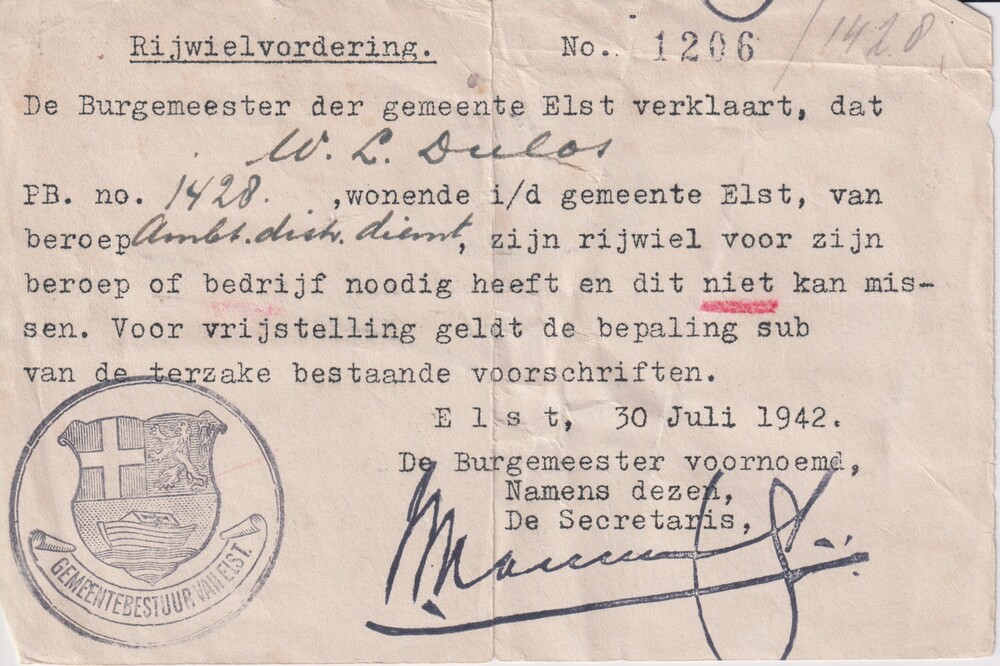 Verklaring vrijstelling invordering rijwiel 30 juli ...