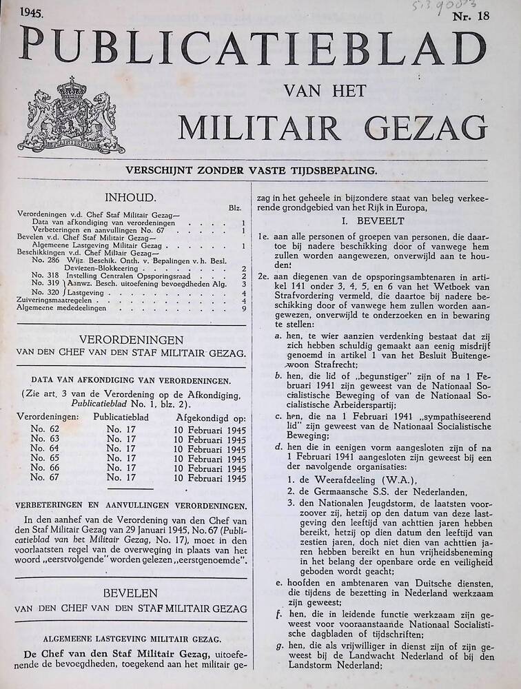Publicatieblad van het Militair Gezag, nr 18, 1945