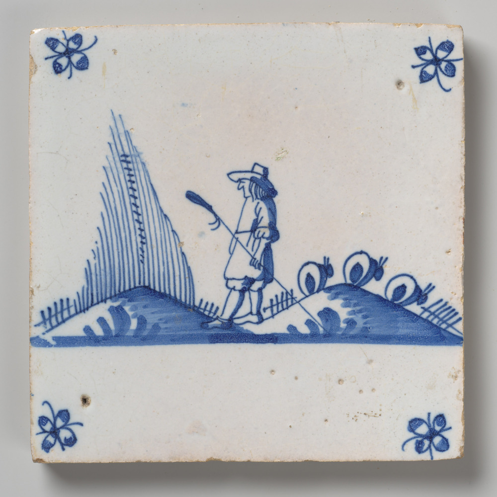 tegel van aardewerk met tinglazuur, voorstellende: m...