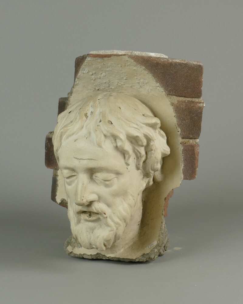 stenen christuskop geassocieerd met Mariakroon, Cule...