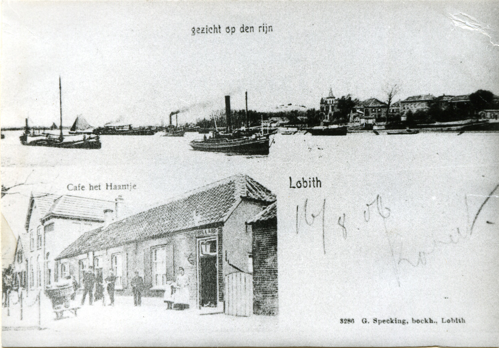 Ansichtkaart met twee zwart-wit foto's van het gezic...