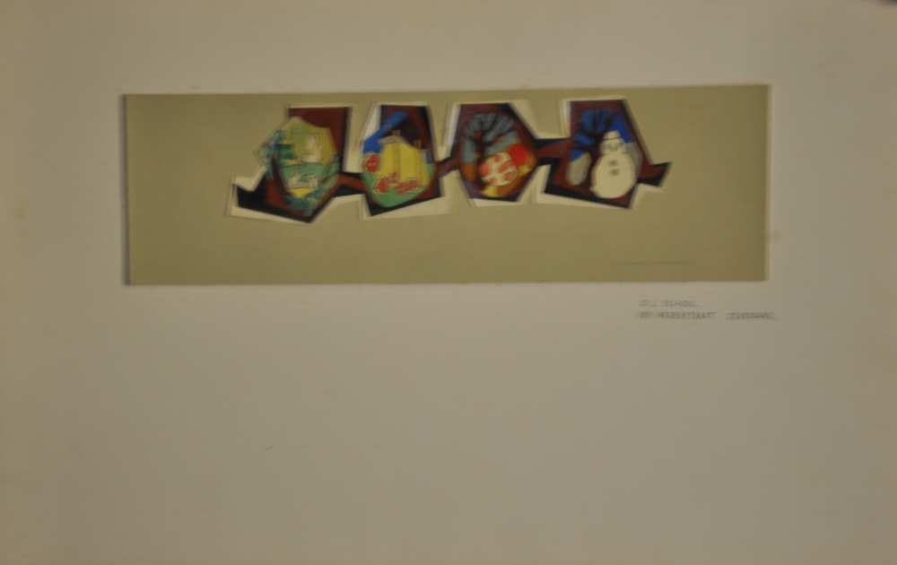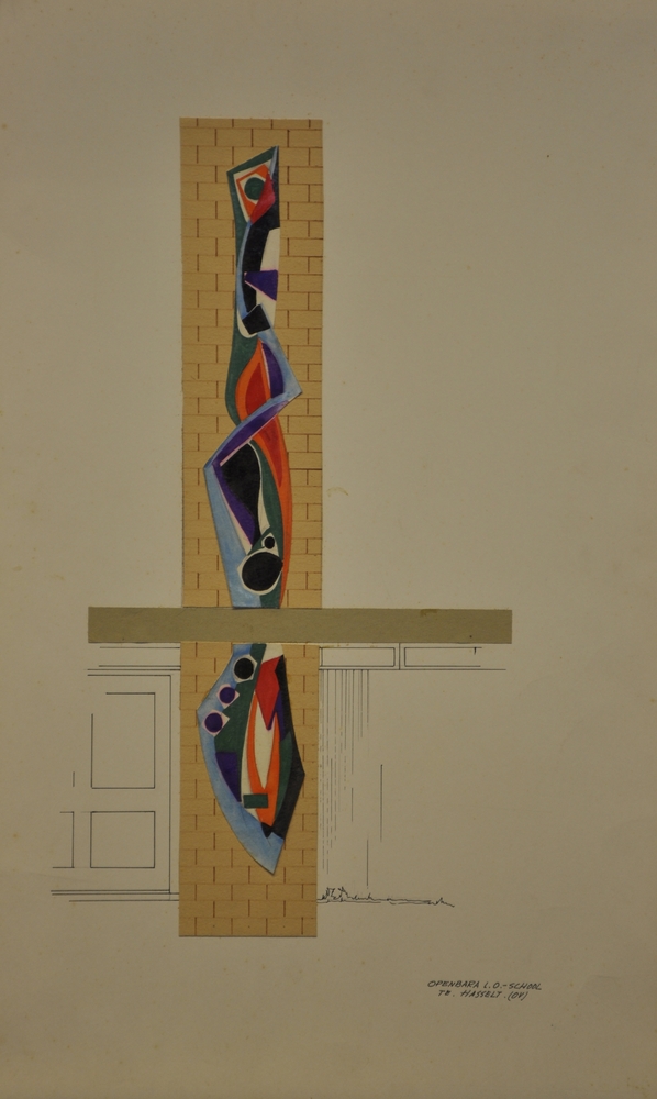 Ontwerptekening op papier van potlood en gouache voo...