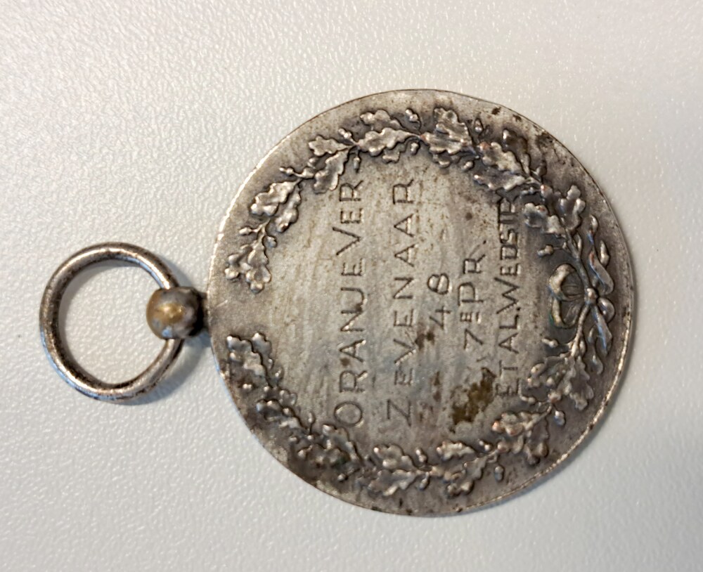 Medaille van verzilverd metaal met gegraveerde tekst...
