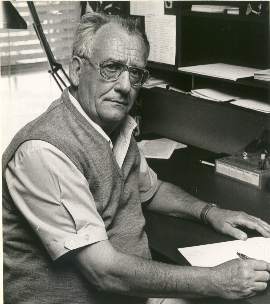 Zwart-wit foto van de heer Abrahams hoofd van de MAV...