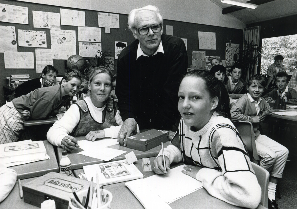 Zwart-wit foto van het basis onderwijs te Tolkamer i...