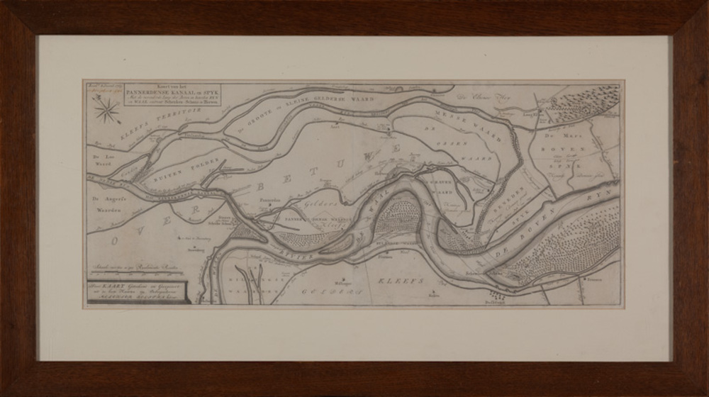 Rivierkaart van papier en inkt van het Pannerdens Ka...