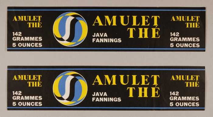 Zwart, papieren label VAN NELLE AMULET THEE, java fa...