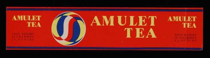 Rood, papieren label VAN NELLE AMULET THEE, 64 gram