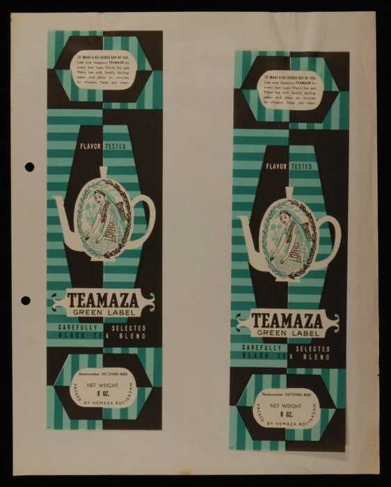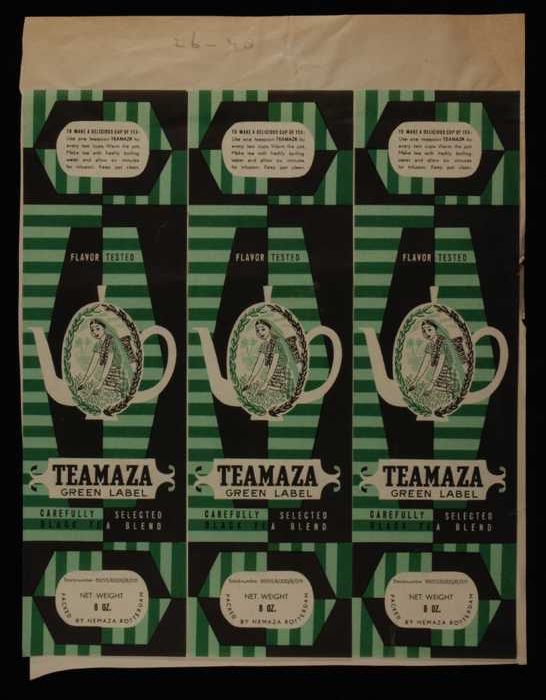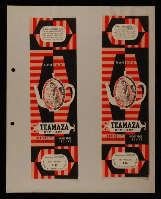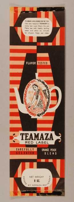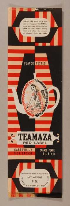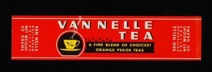 Wit en rood, papieren label VAN NELLE TEAMAZA THEE, ...