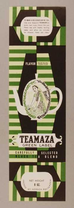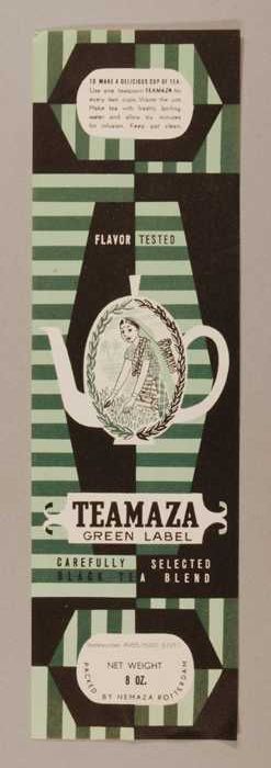 Wit en groen, papieren label VAN NELLE TEAMAZA THEE,...