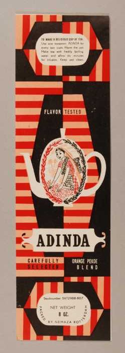 Wit en rood, papieren label VAN NELLE ADINDA THEE, p...