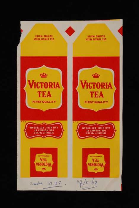 Wit, kartonnen label VAN NELLE VICTORIA THEE, 1 thee...